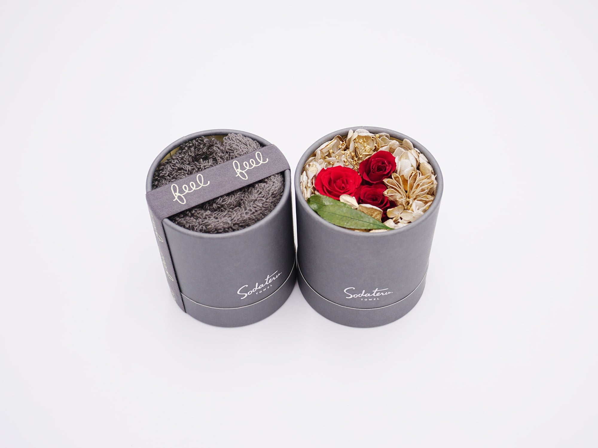 プリザーブドフラワーなので、長く楽しめるしタオルも使いやすい!